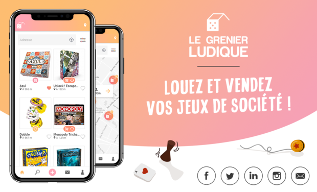 Le grenier ludique est une appli d'achat, vente & location de jeux de société et tout ça à proximité.