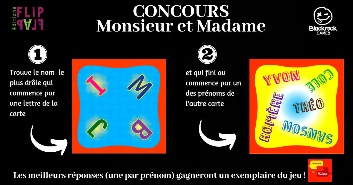 – Trouvez le nom le plus drôle qui commence par une lettre de la carte de gauche…et qui fini ou commence par le prénom de la carte de droite.