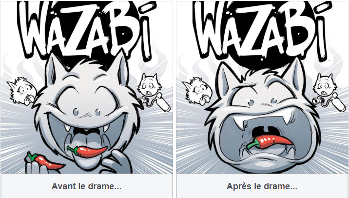 L’extension s’appellera « Wazabi, supplément piment » et aujourd’hui nous faisons appel à vous pour voter pour l’image que vous préfèreriez voir sur la boîte : avant le drame ou après le drame ?