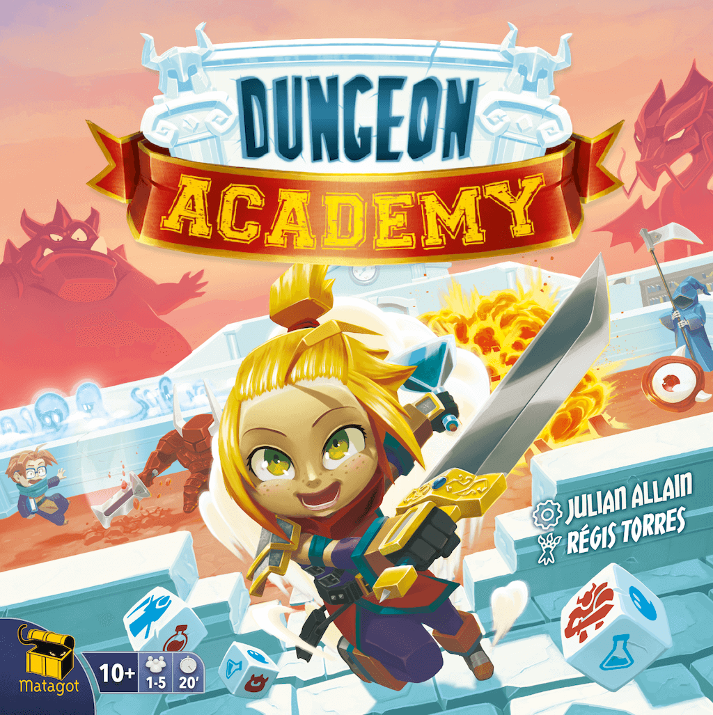 C'est un jeu familial, mélange entre un Loony Quest et un Roll & Write dans un univers de Dungeon Crawler. On incarne un élève qui va devoir gérer deux ressources : sa vie et son mana, afin d’explorer 4 niveaux de donjons et prouver qu’il est le meilleur de l’académie.
