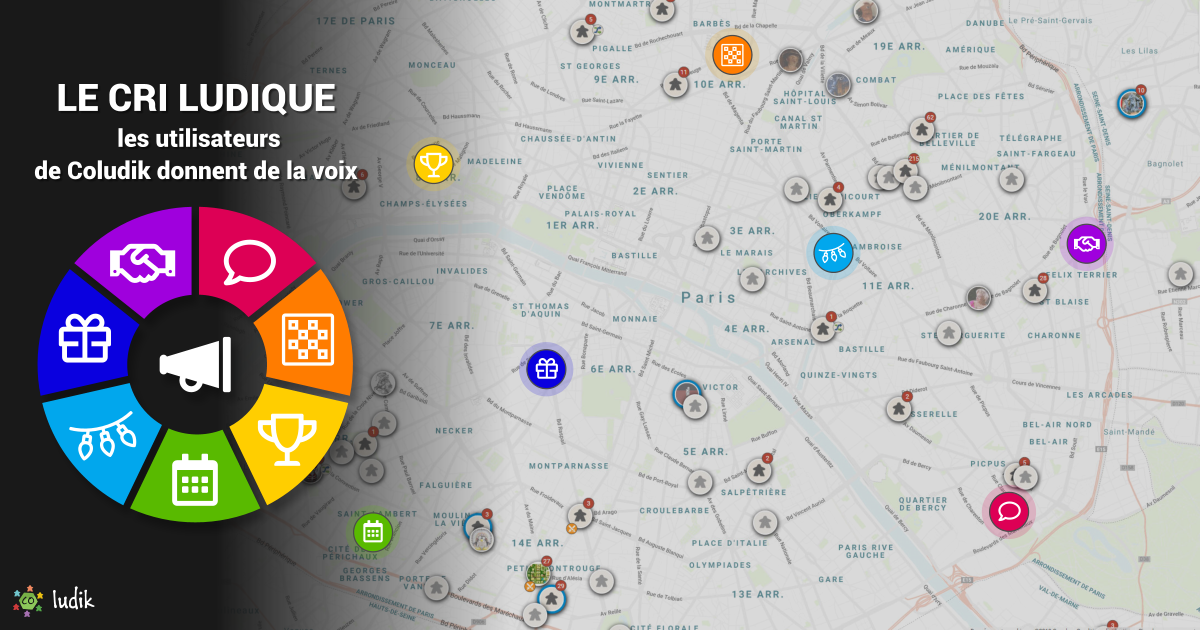 Coludik lance le cri ludique, un moyen simple de vous adresser aux autres membres de la plateforme. Le cri est un message géolocalisé que vous placez là où il fait du sens pour vous (un bouton en forme de mégaphone a été ajouté sur la carte pour crier). Il est voyant (icône qui pulse) et vous donne des chances d'être lu. Sa visibilité sur la carte est temporaire (7 jours) mais il continuera à vivre sous votre profil si vous ne l'effacez pas. Il est possible de lui assigner une catégorie parmi 7 (l'une d'entre elles étant un fourre-tout) pour une meilleure lecture de la carte […]
