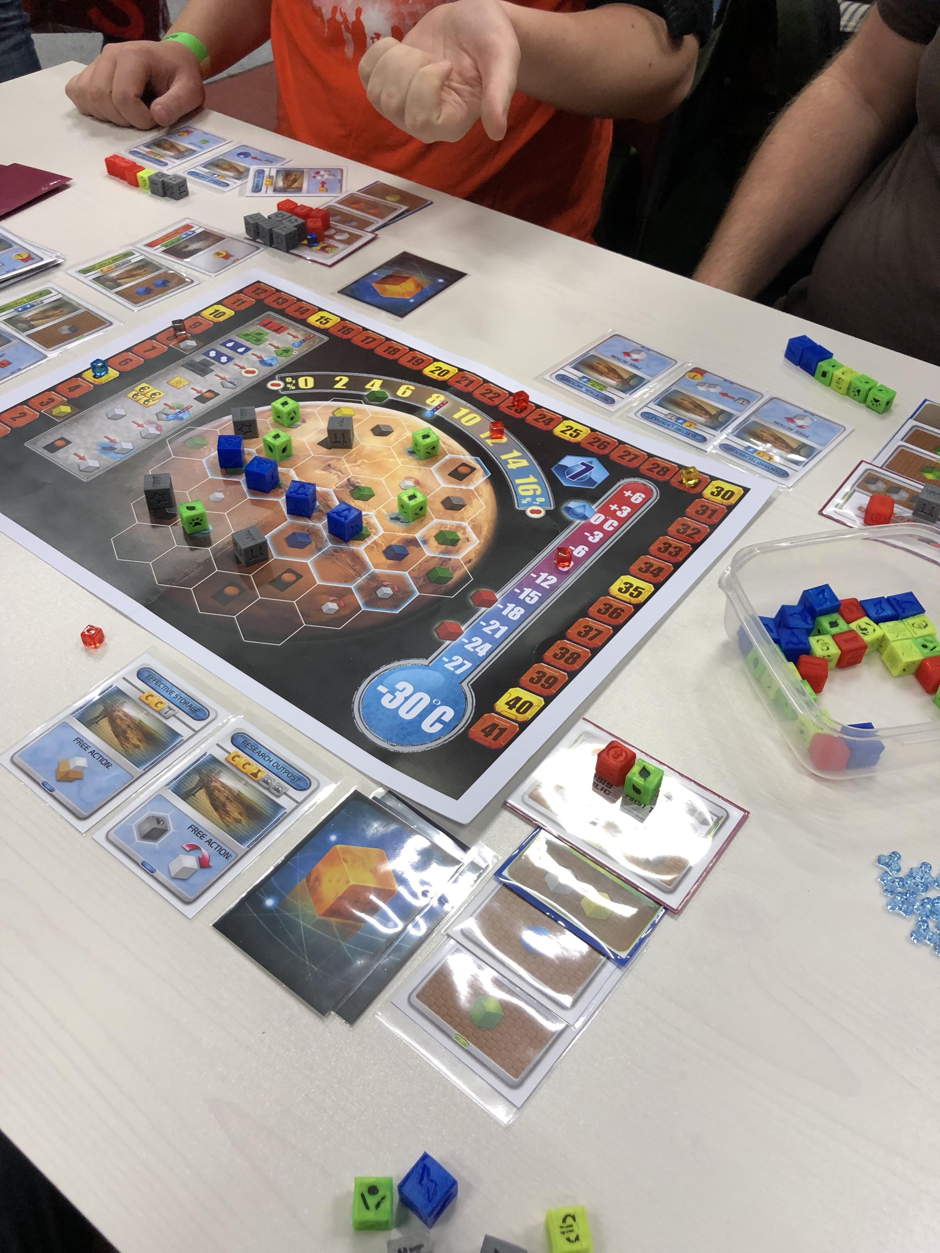 Échangez 2 dés rouges avec le symbole de température pour augmenter la température