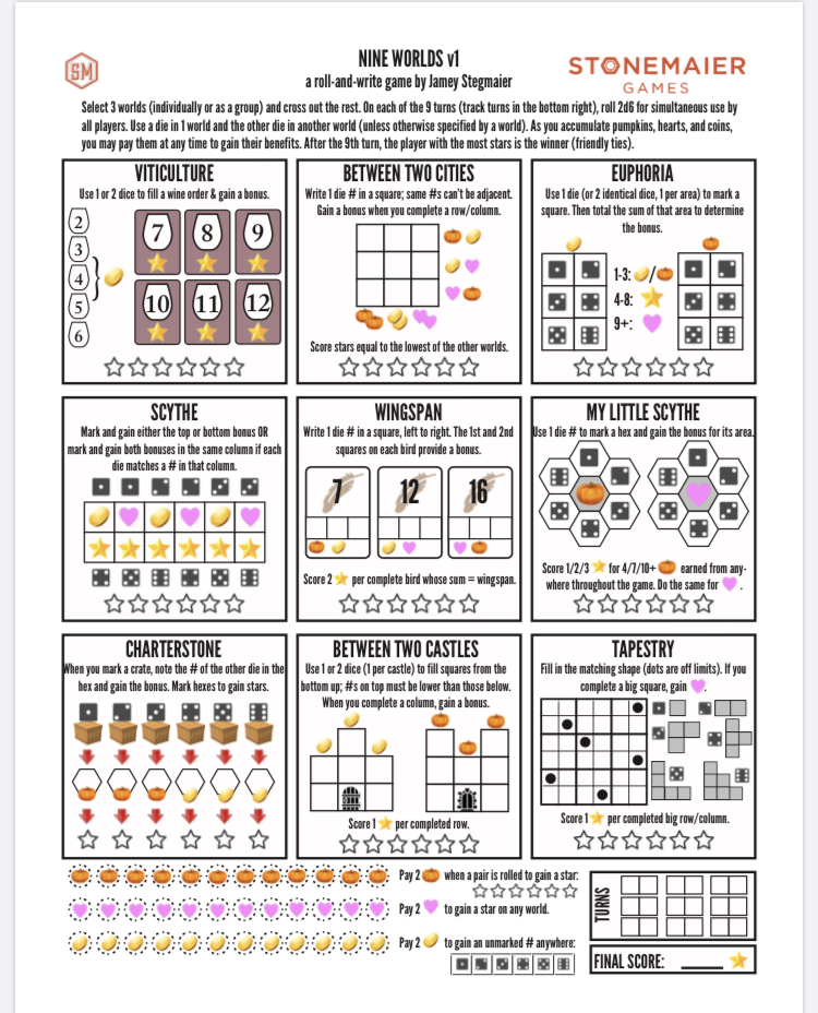 Stonemaier games a fait un roll & write en print and play et vous propose les règles en vidéo aujourd’hui (en anglais)