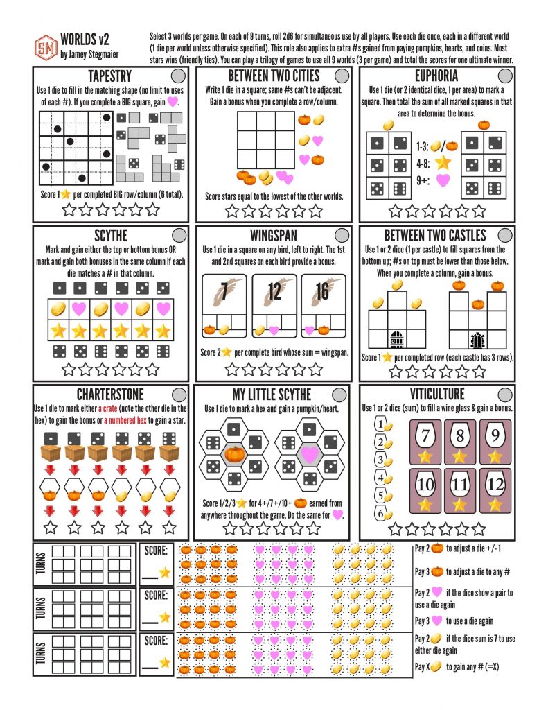 Nine Worlds : print & play / roll & write de chez Stonemaier Games (règles en français)