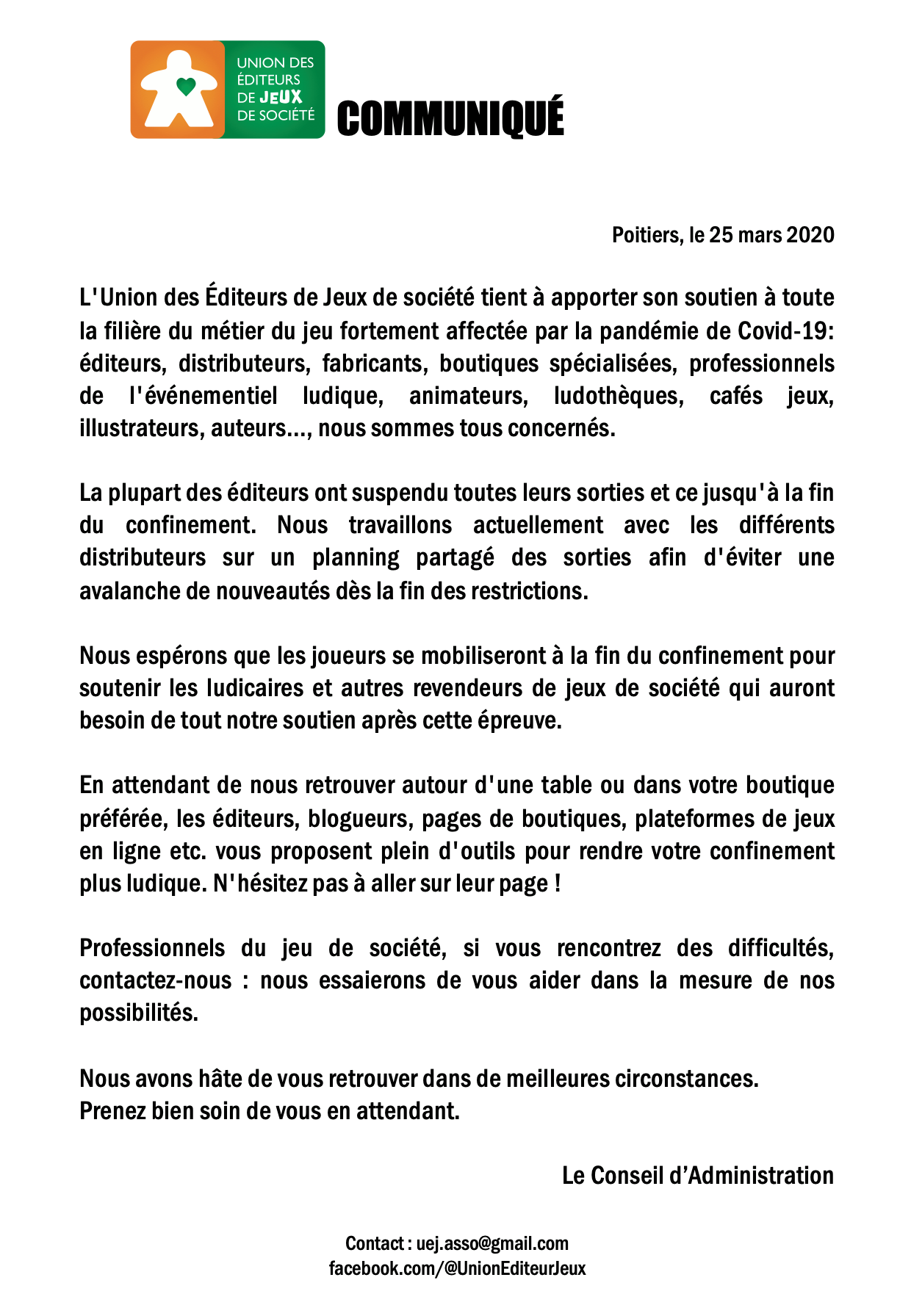 Un communiqué de l'UEJ (Union des Editeurs de Jeux)