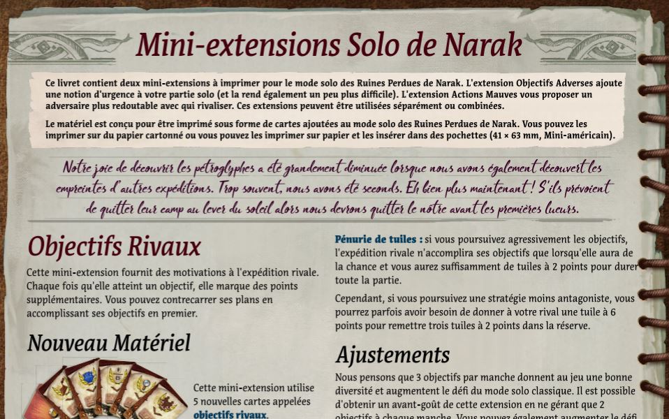 Les ruines perdues de Narak : Mini-extensions Solo officielles, règles en français