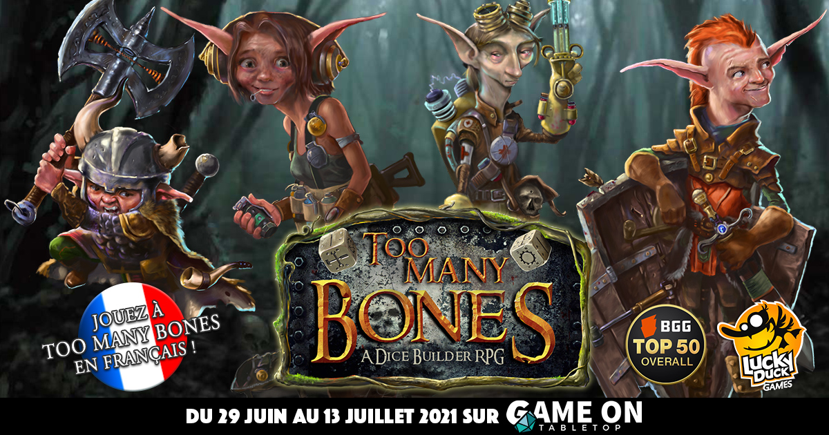 Too Many Bones en VF maintenant sur Game On Tabletop grâce à Lucky Duck Games (129 € – paiement en 2 fois possible – livraison Avril 2022))
