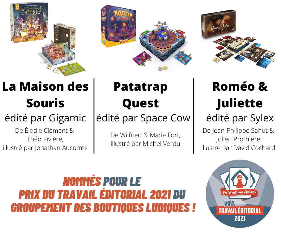 – La Maison des Souris, édité par Gigamic (un jeu de Élodie Clément et Théo Rivière, illustré par Jonathan Aucomte).