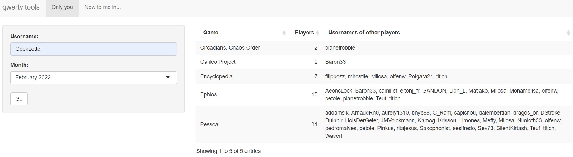 Une application web [Only You] liée à BGG qui liste les jeux que vous êtes les seuls à avoir joués [stats mensuelles]