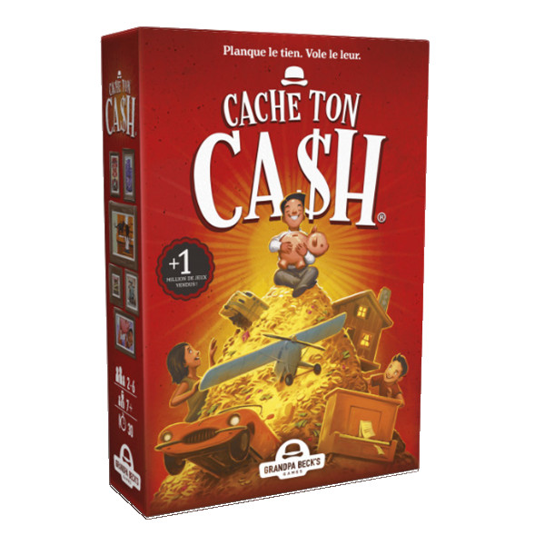 Critique de Cache ton Cash, un petit jeu de cartes familial où le but est d'être en premier millionnaire en possessions !