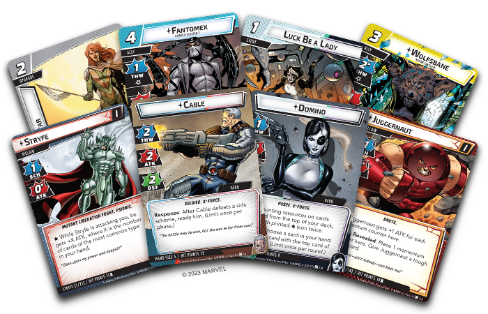 Dans cette extension, l’équipe de héros mutants connue sous le nom de X-Force entre en scène ! Les ennemis les plus emblématiques de X-Force se dressent contre eux, notamment les brutaux Maraudeurs, l’inarrêtable Juggernaut et l’éternel comploteur Mister Sinister. Cette extension comprend cinq scénarios inédits et, comme pour les extensions précédentes, vous pouvez jouer chacun de ces scénarios individuellement ou dans le cadre d’une campagne plus vaste. NeXt Evolution donne également le coup d’envoi d’une nouvelle vague de héros X-Force jouables dans le jeu, à commencer par Cable et Domino, tous deux livrés avec des decks entièrement préconstruits et prêts à être joués dès leur sortie de la boîte. Et dans ces decks, vous trouverez un tout nouveau type de carte : les schémas côté joueur !