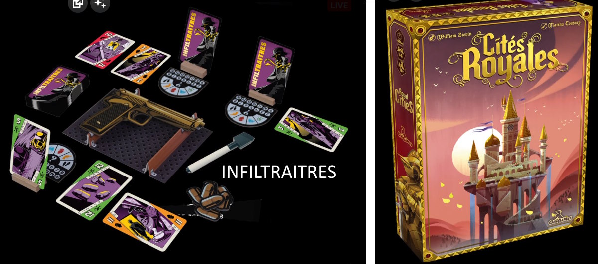 Origames a annoncé deux jeux dont on voit les visuels sur la matinale actu de Un monde de jeux avec Penelope Gaming : Infiltraitres & Cités Royales