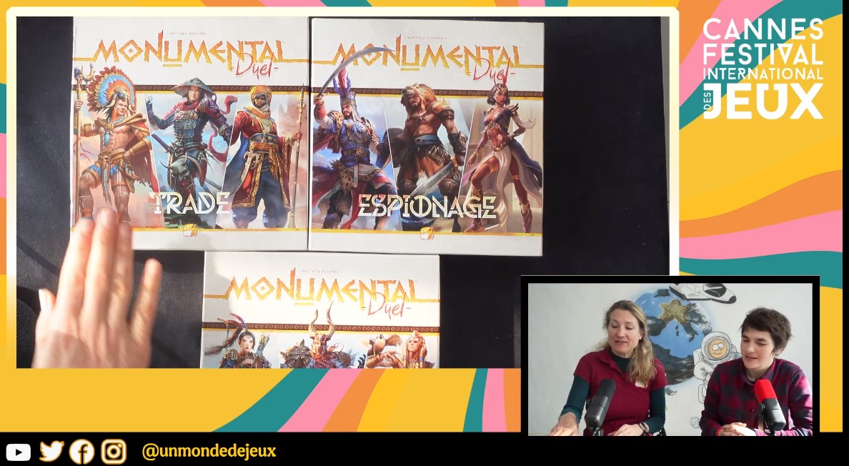 Funforge annonce les 3 boites Monumental Duel (négoce, espionnage, exploration) qui sortent en juin 2024