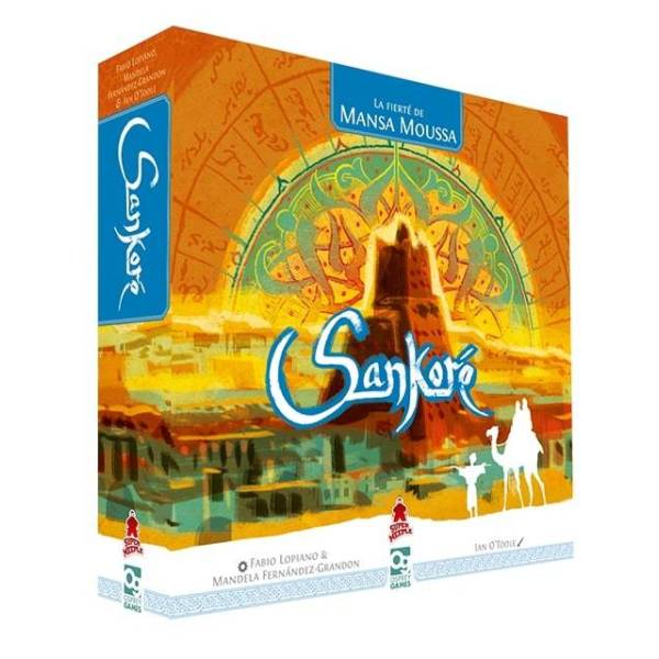 Sankoré est un eurogame expert dynamique et interactif jouable de 1 à 4 joueurs, dès 14 ans pour des parties d’environ 90 minutes, édité par Super Meeple.