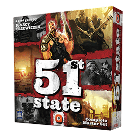 51st State est un jeu de cartes stratégique et compétitif populaire pour 1 à 4 joueurs où votre objectif est de bâtir une nouvel État dans un monde post-apocalyptique. Vous utiliserez vos ressources pour bâtir de nouveaux Lieux, ferez des Affaires pour augmenter votre production et attaquerez les infrastructures de vos adversaires parce qu’un seul État peut l’emporter dans cet univers hostile.