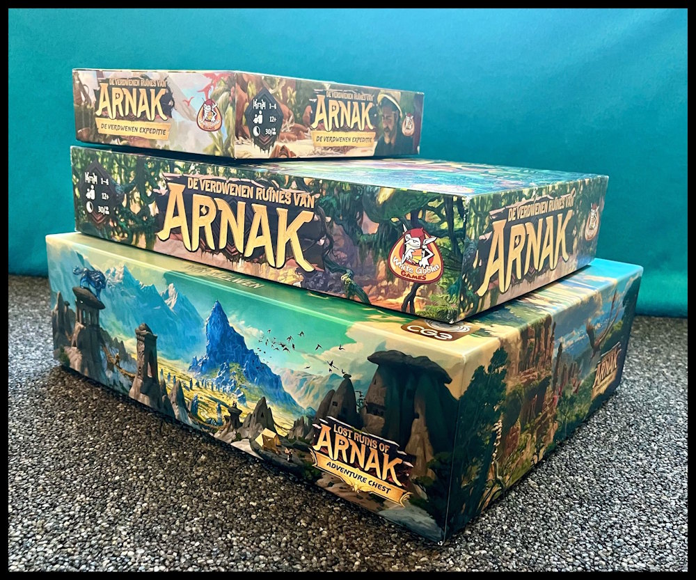 Ce coffret comprend également une toute nouvelle extension, Sentiers Sinueux, qui propose un nouveau plateau recto-verso – plus grand que celle du jeu de base – avec deux nouvelles pistes de recherche, chacun avec des mécaniques et des éléments uniques (comme de toutes nouvelles tuiles de temple ou de nouvelles ressources – des tablettes sombres). En plus des nouvelles cartes, l’extension contient de nouveaux gardiens, sites et assistants, ainsi que du contenu solo qui avait été précédemment proposé en print & play.