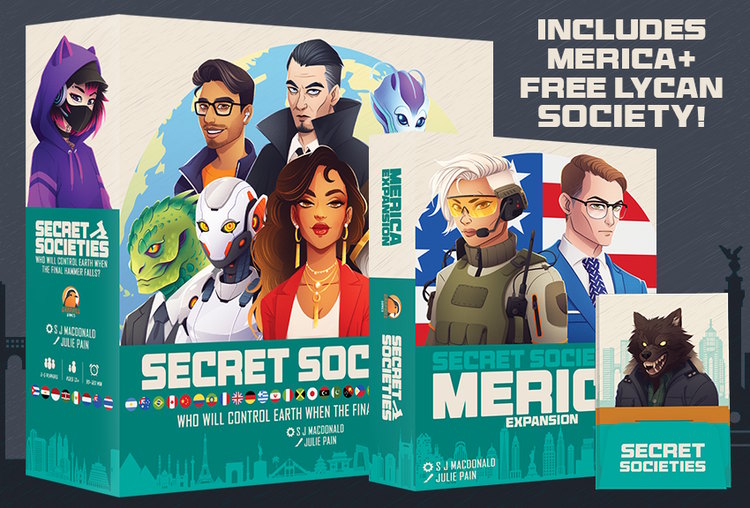 Chaque contribution à la campagne donne droit à un bonus : la faction Lycan Society est offerte (en plus des 8 de base dans la boite), et l’extension Merica est proposée en option pour ajouter encore 2 factions et modifier quelques mécaniques notamment celles liées aux États-Unis.