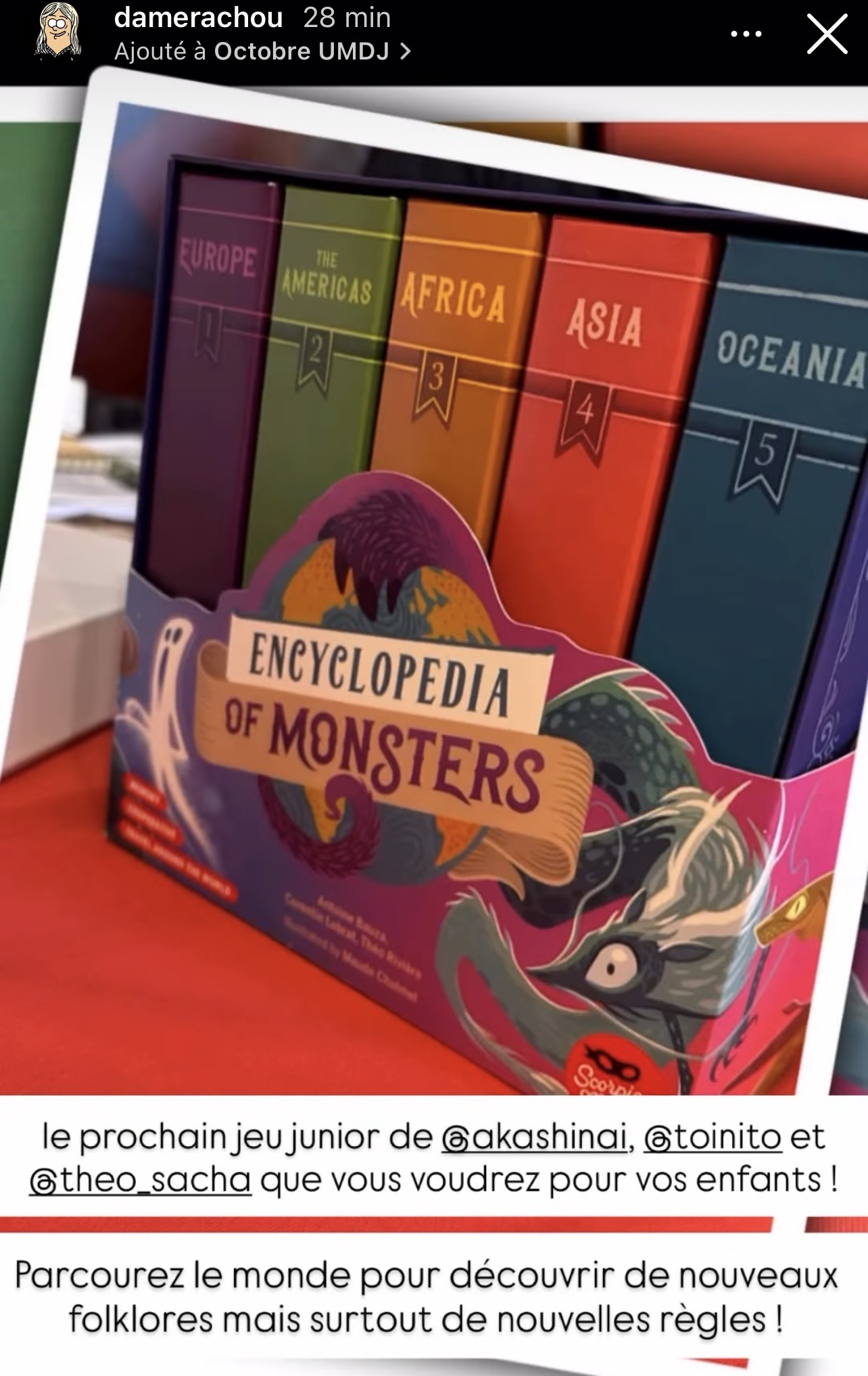Rachel a partagé Encyclopedia Of Monsters, un jeu à venir chez Scorpion Masqué créé par Antoine Bauza, Theo Rivière et Corentin Lebrat.