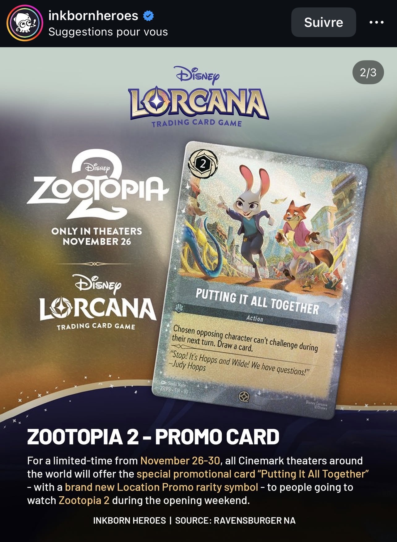 Une carte Lorcana pour ceux qui vont voir Zootopie 2 au cinéma du 26 au 30 novembre