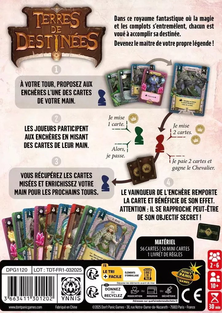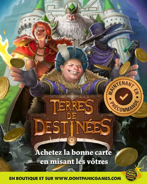 Entrez dans Terres de Destinées, un jeu de Olivier Flament, un royaume où magie et complots façonnent votre chemin… et où chaque décision peut sceller votre victoire.
