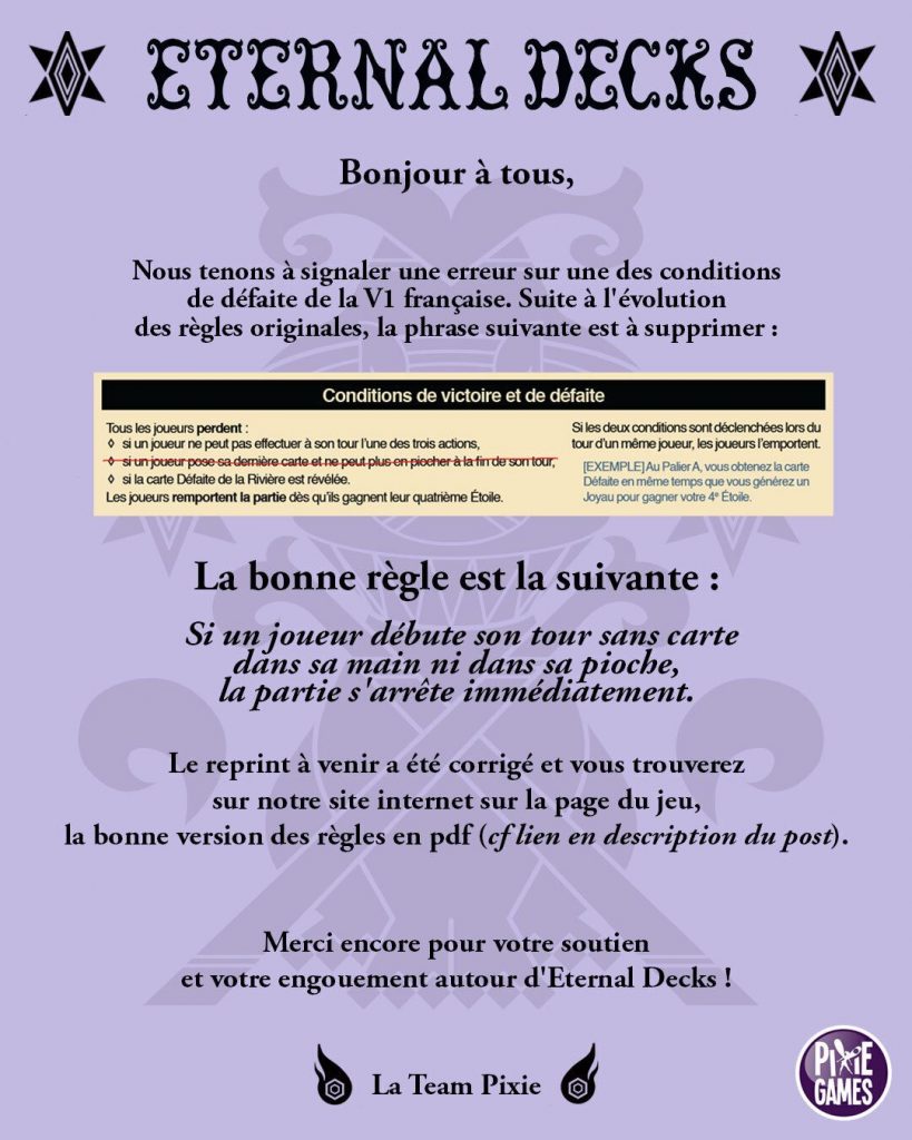 Le correctif est : Si un joueur débute son tour sans carte dans sa main ni dans sa pioche.