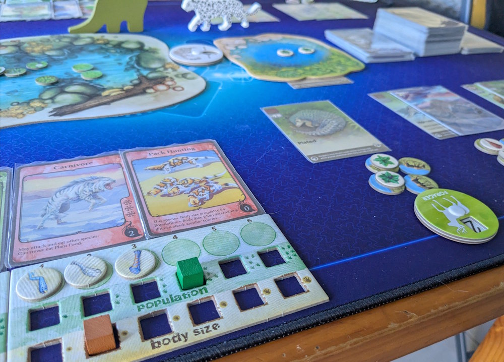 Malgré son succès, Evolution pouvait être une expérience horrible pour les nouveaux joueurs. Evolution est un jeu de construction de moteur qui fonctionne avec un effet boule de neige. Lorsque vous faites une erreur, vous en payez immédiatement le prix en obtenant moins de points pour ce tour, et vous payez à nouveau pour cette erreur à chaque tour suivant en jouant avec moins de ressources. Les riches s’enrichissent et les pauvres s’appauvrissent.