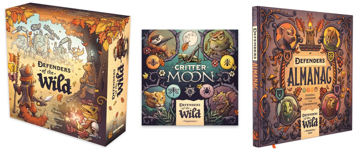 À venir en 2026 : l’extension Critter Moon pour le jeu de société coopératif opposant les animaux aux machines, Defenders of the Wild, créé par T.L. Simons, en collaboration avec le concepteur de jeux Henry Audubon et l’illustratrice Meg Lemieur.