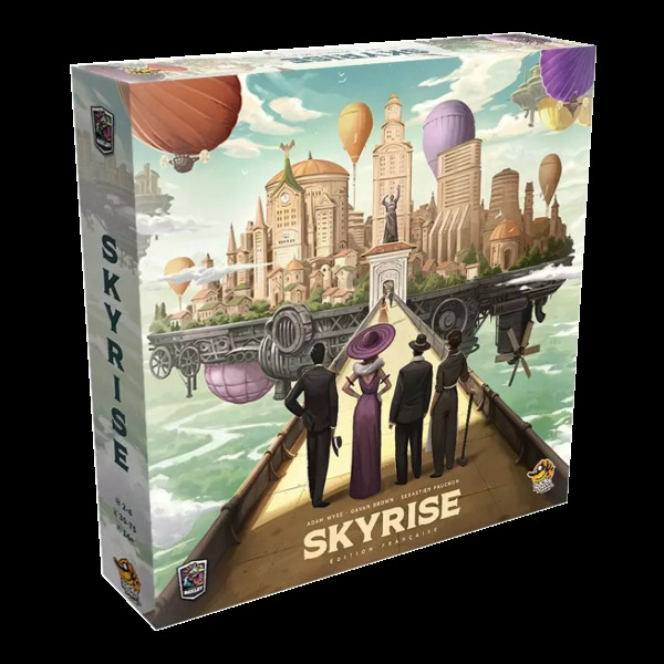 Test critique de Skyrise (Lucky Duck Games, 2025), un jeu d’enchères et de contrôle de zone dans un jeu de développement urbain prenant place dans un univers Steam punk … en plein ciel !