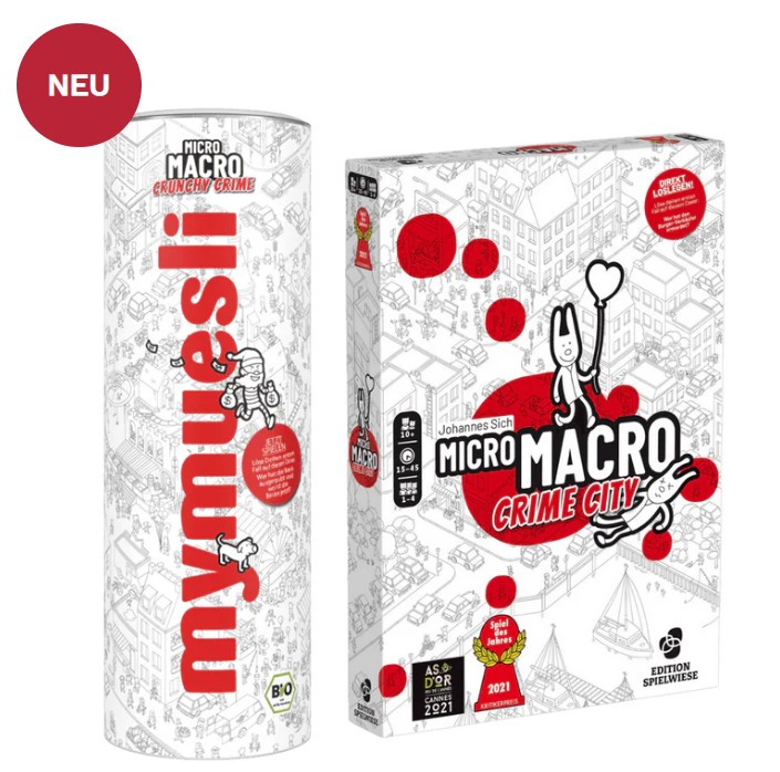 En collaboration avec le fabricant de jeux MicroMacro : Crime City, la boite de céréales propose le jeu d’observation voire d’enquête sur l’emballage