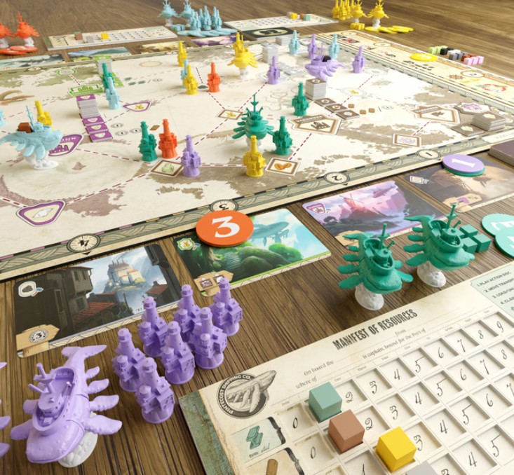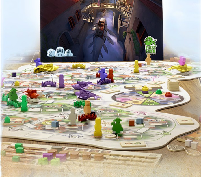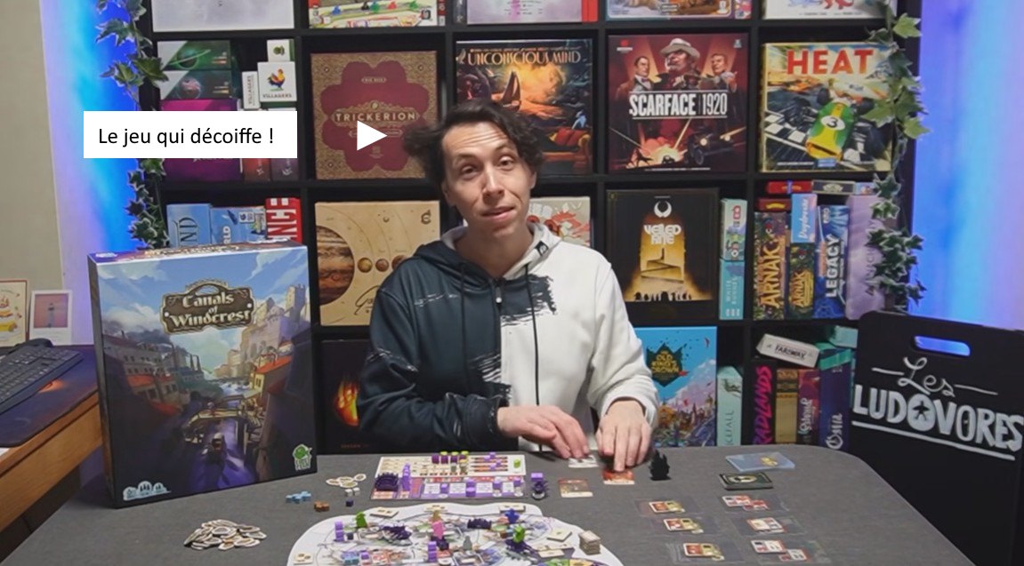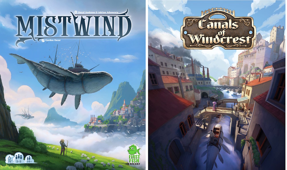 Dans Canals of Windcrest, les joueurs piochent des cartes de localisation qui leur permettent d’obtenir des ressources et des actions spéciales. Les ressources sont utilisées pour construire des ponts et des bâtiments, mais aussi pour fabriquer des biens destinés à l’exportation. Naviguez sur les canaux à bord de ferries volants en forme de baleines pour livrer les marchandises exportées tout en transportant des citoyens et des contremaîtres afin d’obtenir divers bonus. Les joueurs disposeront également d’investisseurs qui les aideront de différentes manières, notamment en leur accordant des pouvoirs spéciaux et des bonus de score en fin de partie. À la fin des 4 manches, le joueur qui a accumulé le plus de prestige remporte la partie.
