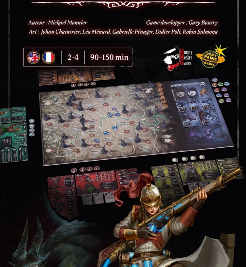 Prenez le contrôle de 5 districts avec votre faction pour remporter la partie… mais attention : si le Néant l’emporte, tout le monde perd ! Inspiré par un Londres victorien déformé par l’occultisme, plongez dans l’univers de dark fantasy de Tales of London, sublimé par les superbes illustrations du studio Weirdloop et les figurines détaillées sculptées par Renato Mazarin et Diego Navarrete. »