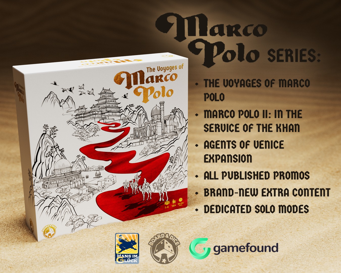 Board & Dice l’annonce sur sa page Facebook. Marco Polo revient en campagne de financement sur Gamefound. C’est un partenariat entre eux et Hanz Im Gluck.