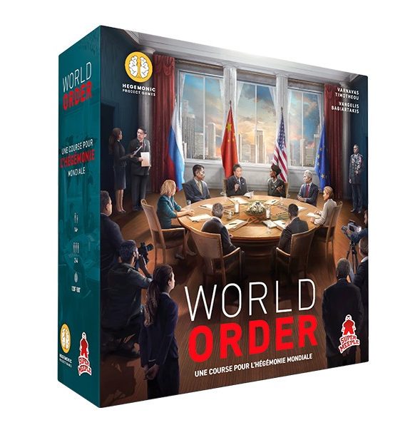 Le jeu de société World Order simule les relations internationales modernes, les joueurs prenant le contrôle de l’une des quatre puissances mondiales dominantes des années 2010 : les États-Unis d’Amérique, la République populaire de Chine, la Fédération de Russie et l’Union européenne. Utilisez votre pouvoir diplomatique, votre force économique et votre puissance militaire pour étendre votre influence à travers le monde. Formez des alliances régionales, séduisez d’autres nations grâce à des dépendances économiques astucieuses ou devenez la puissance militaire avec laquelle personne n’ose se mesurer. »
