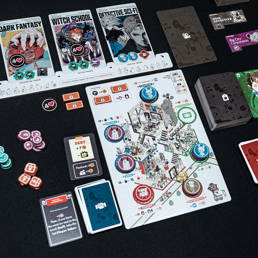 Jisogi fait partie des coups de coeur de Essen à la maison et cette version 1.5 verra le jour en français, proposé par Don’t Panic Games. Editeur qui aime le Japon, nous ne sommes donc pas étonné que ce jeu où les joueurs gère un studio d’animation japonais soit localisé par Don’t Panic Games.