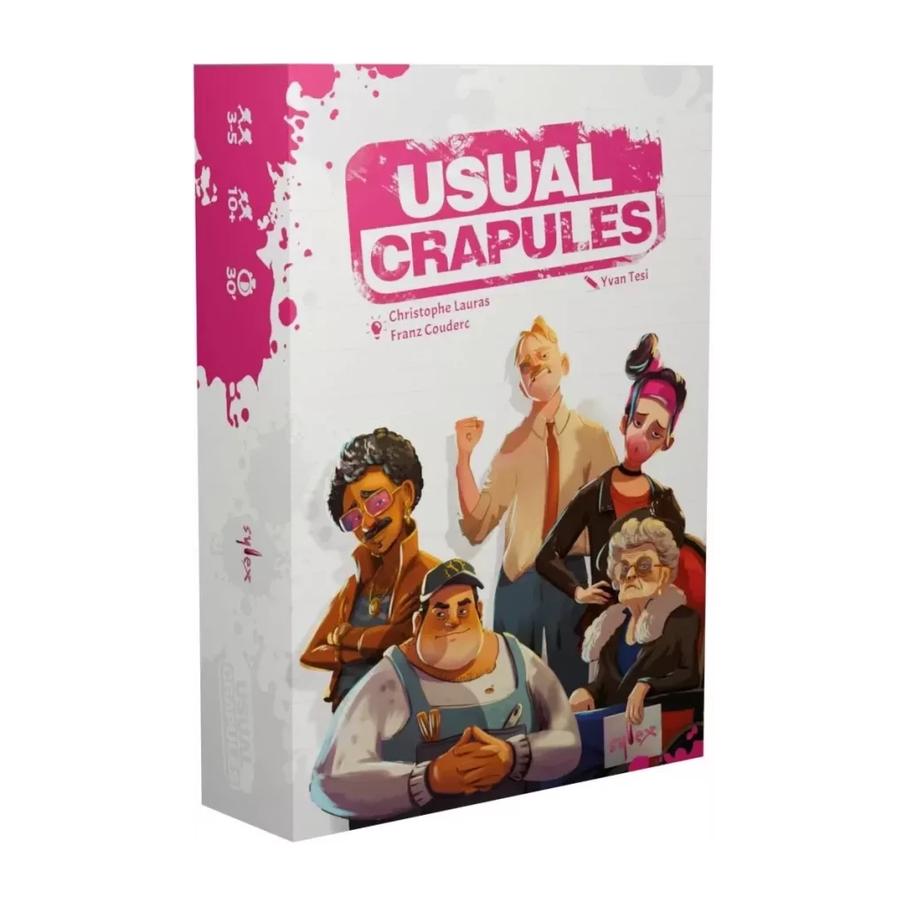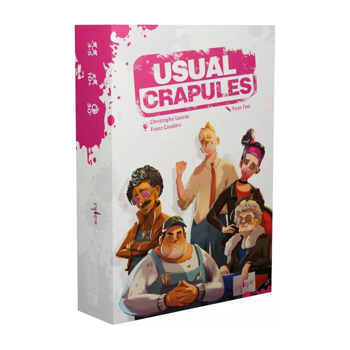Usual Crapules est un jeu de société de cartes et de bluff jouable de 3 à 5 joueurs, dès 10 ans pour des parties d’environ 30 minutes, édité par Sylex.