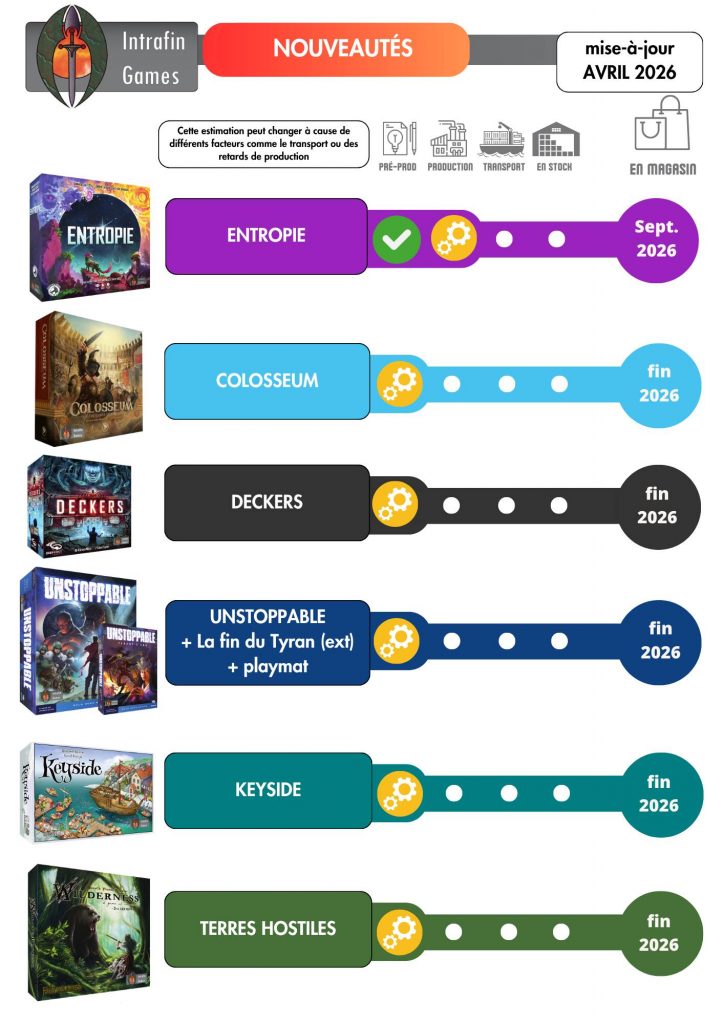 ). Brésil et Japon arrivent très bientôt. Mais ce n’est pas tout ! Le Projet Leeghwater sera réimprimé, et on vous localise enfin The China Challenge ainsi que la très demandée Duel Map pour vos affrontements en tête-à-tête ! Dispo d’ici la fin de l’année. Pour Earned Authority (actuellement sur KS), la version XO arrivera en 2027 !
