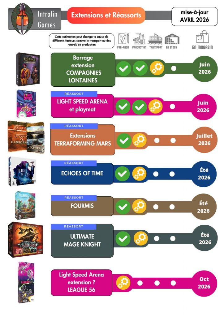Light Speed Arena : Le retour en rayons est prévu pour juin avec le playmat ! Et en automne, place à l’extension League 56 : une boîte contenant les factions Black Hole et Glyphon. Le petit plus ? C’est aussi un standalone pour 2 joueurs ! ![]()